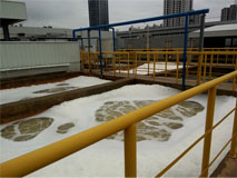該方法是先向難降解有機(jī)物污染的原水內(nèi)投加粉末活性炭混合液,使活性炭與廢水充分混合以進(jìn)行吸附處理,接著向吸附處理后的廢液中投入PAC藥液進(jìn)行絮凝處理,然后將絮凝后廢水進(jìn)行沉降處理,最后將沉降處理后的上清液進(jìn)行超濾處理。該系統(tǒng)包括原水池、吸附反應(yīng)池、絮凝反應(yīng)池、預(yù)沉池、中間水池、膜超濾供水泵、成套膜超濾單元、AC溶投藥裝置、PAC溶投藥裝置和PLC控制單元。